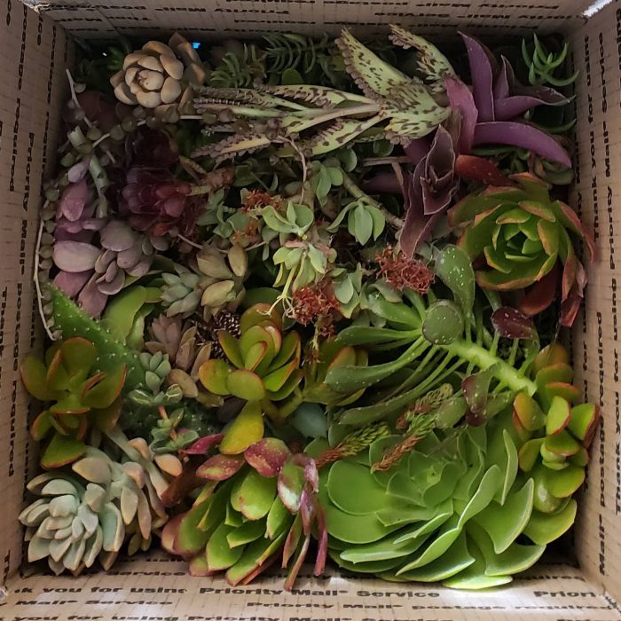 - Large box: Approximately 60-80 hand-selected succulent clippings